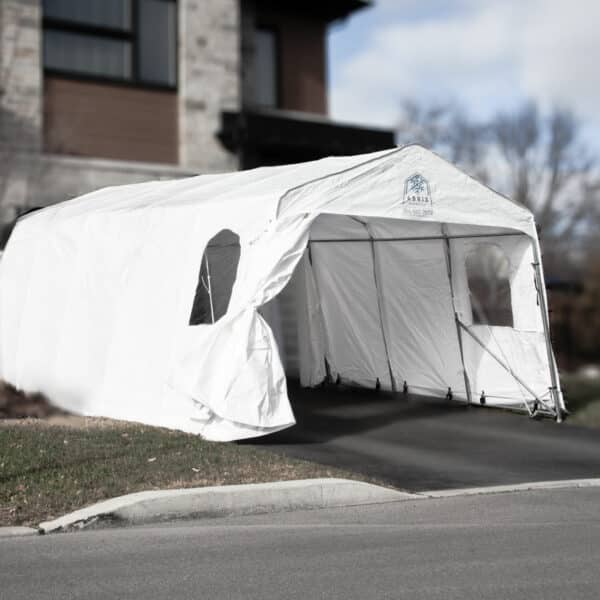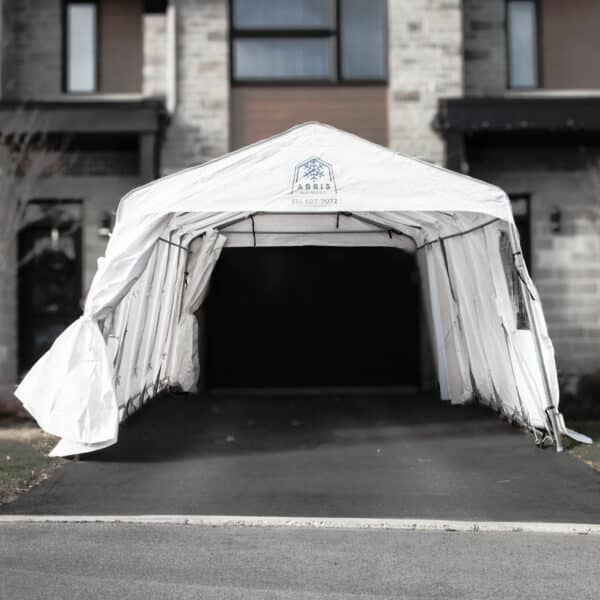 • Arches et structure : Acier galvanisé 18 GA Tuyau 1” 3/4” x 1 ¼” mini ovale (poteaux plus massif qu’un abri simple standard, structure robuste)