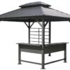 Si votre arrière-cour a besoin d’un espace de détente qui soit également fonctionnel pour recevoir, ne cherchez pas plus loin que le gazebo Lucca de 10 x 12 pi. de Sojag. Le comptoir en forme de L, ainsi que le mur de treillis pour l’intimité, offrent des options de configuration infinies pour répondre à vos besoins. Cette structure à double zone prend en compte chaque aspect de votre style de vie.