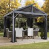 Modernisez votre espace de détente extérieur avec l’abri soleil nouvelle génération Sanibel de Sojag. Avec ses lignes épurées, il est aussi pratique qu’attrayant. Proposé avec trois types de toits différents, cet abri soleil unique allie style et polyvalence. Découvrez notre collection Sanibel et découvrez l’abri soleil qui vous convient le mieux. La collection Sanibel offre un ombrage et une protection fiables grâce à un toit en acier galvanisé durable. Doté d’un cadre en acier robuste à revêtement en poudre de qualité supérieure, cet abri est à la fois solide et attrayant.